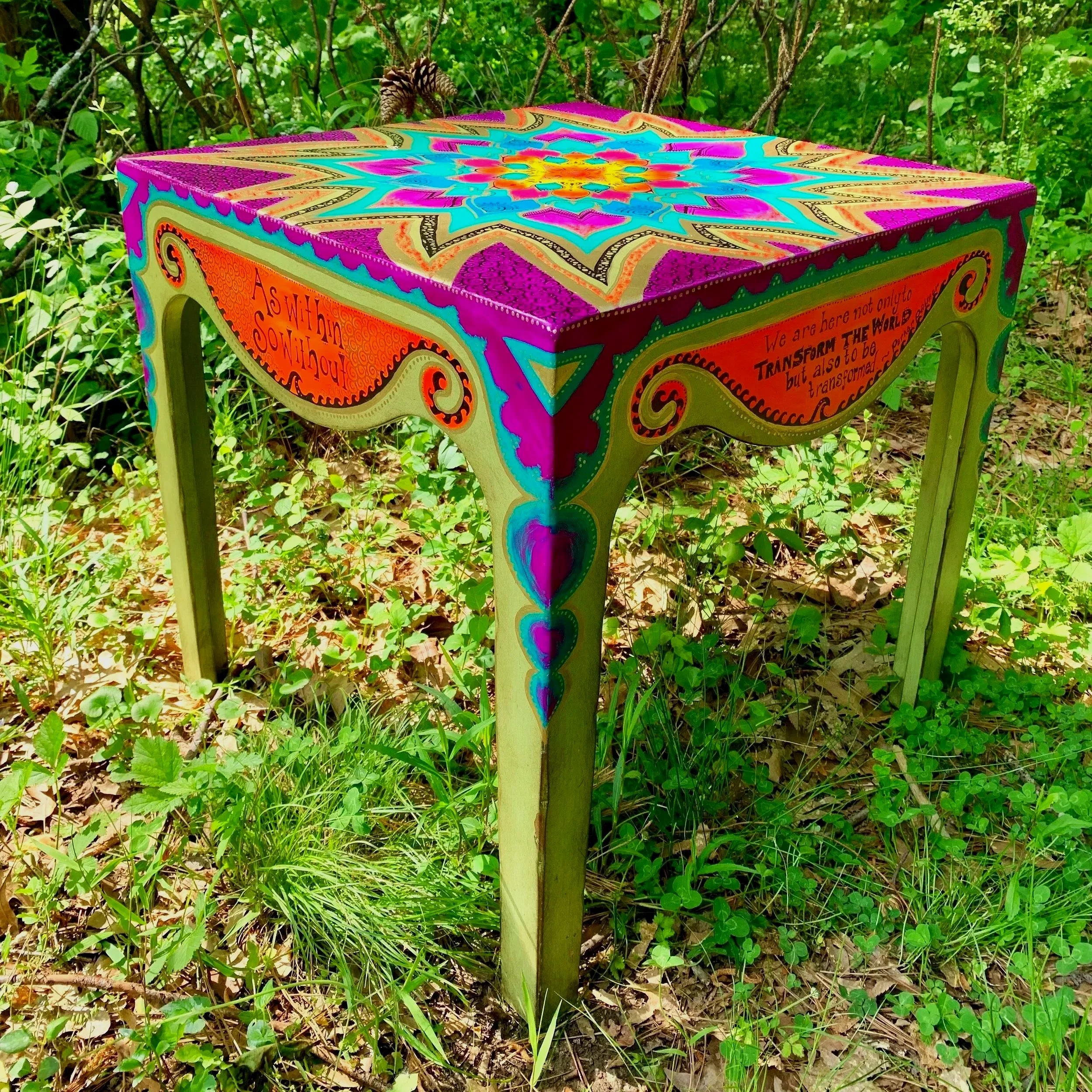 Kady works with many mediums to create her artwork. She primarily uses Acrylic, Concentrated Watercolor, and Ink, enjoying the creativity of spirit led art upon canvas, wood, or custom furniture! She also creates murals for larger walls and spaces!